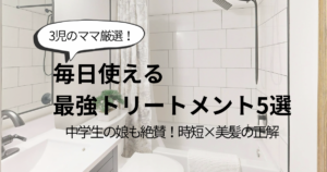 3人の子供を育てる「年の差ママ」が厳選!忙しい毎日でもツヤ髪を諦めないための「毎日使えるトリートメント5選」をご紹介します。ドラッグストアで手軽に買える名品から、中学生の娘と一緒に愛用している実力派まで。時短と質にこだわった、ママ目線の本命ヘアケアだけをまとめました。
